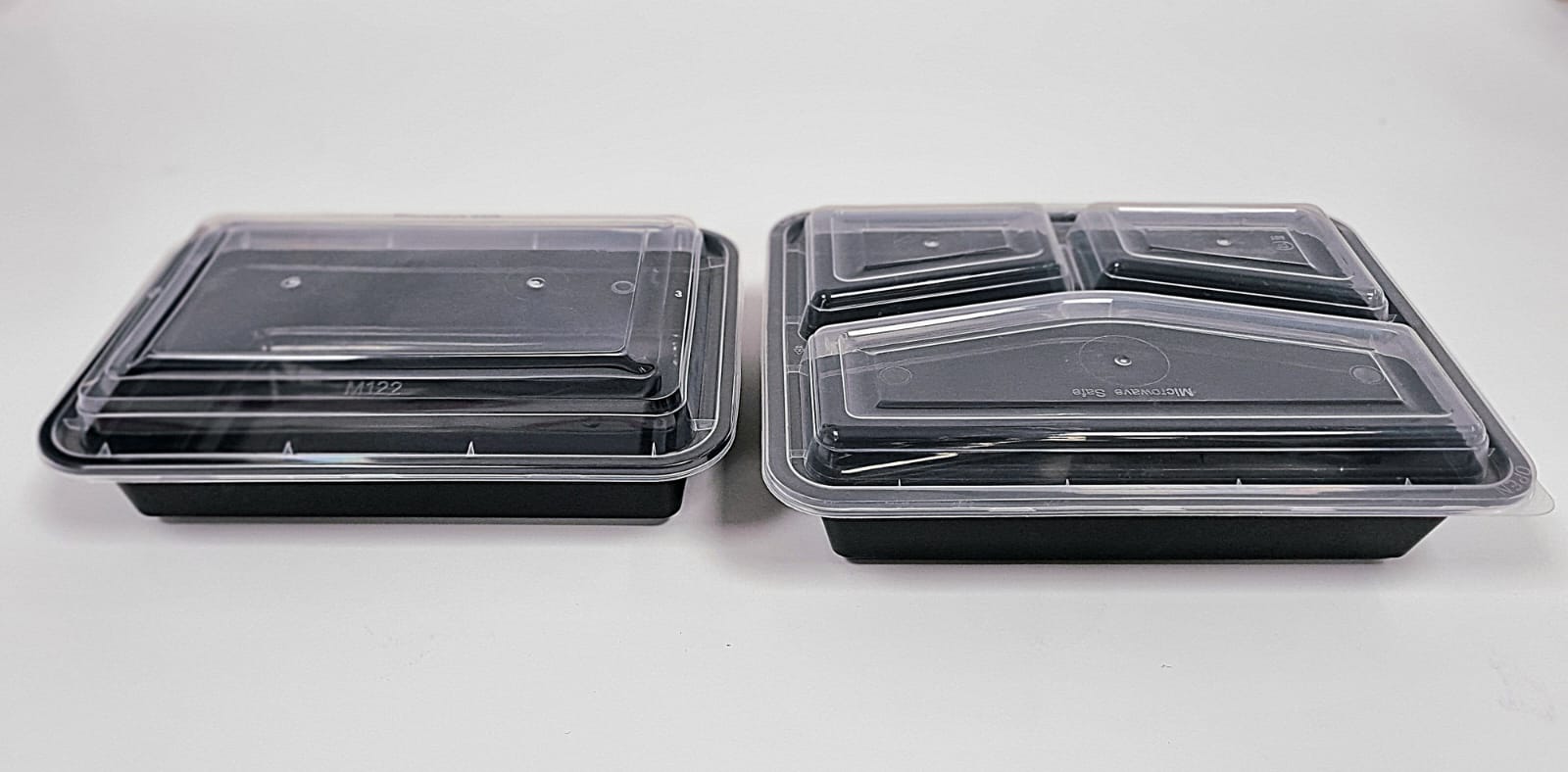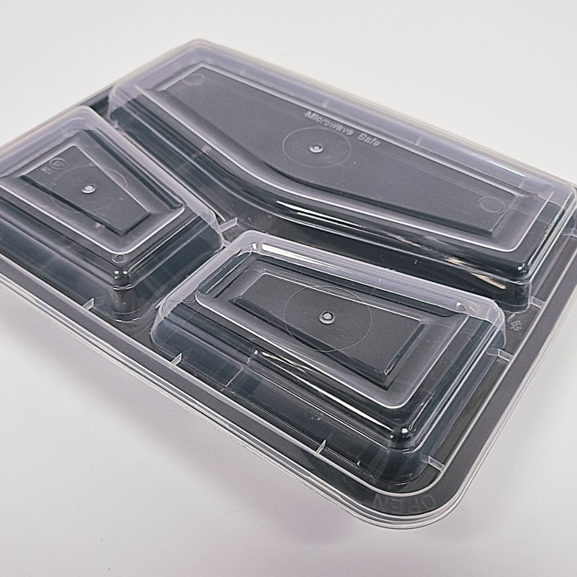 מיכל פלסטיק שחור מחולק עם מכסה שקוף