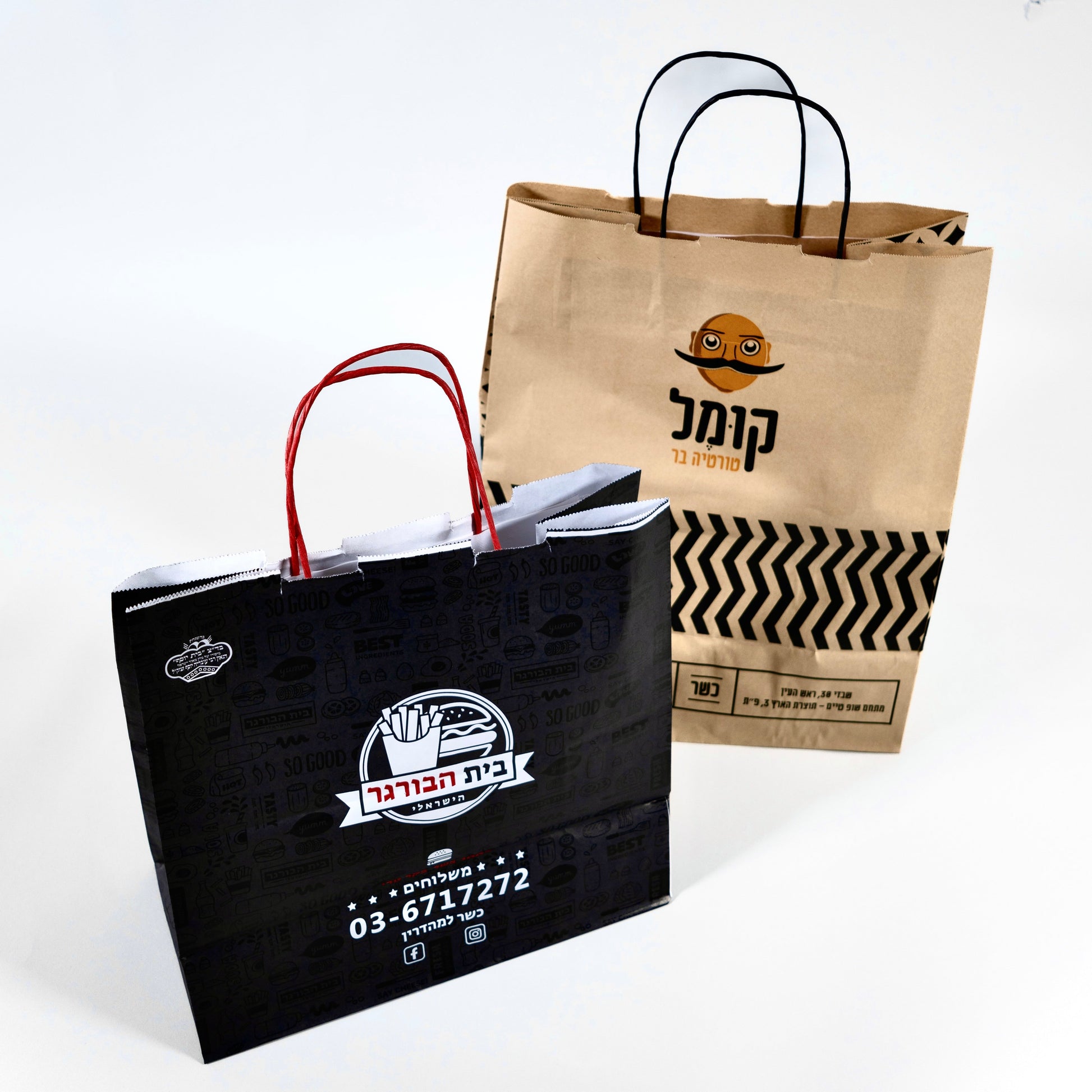 שקיות נייר ממותגות עם לוגו לקוח במגוון גדלים